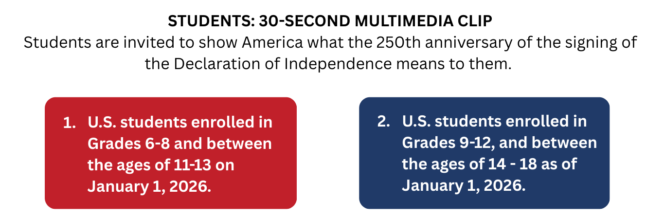 To commemorate the 250th anniversary of the United States, students are invited to create a