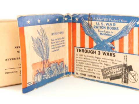 4 War Ration Books in a Dr Pepper sponsored Ration Book protector