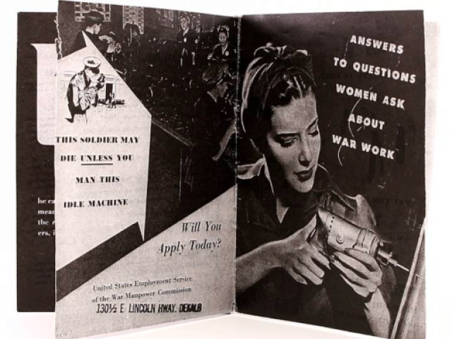 This booklet was originally created by the United States Employment Service of the War Manpower Commission. Date penciled on bottom of back cover is 2/6/47; possibly the day it was accessioned into the National Archives, Records of War Manpower Commission, Record Group 211. Its purpose was to explain to women why the government wants and needs them to work outside of the home and how it might affect their family.