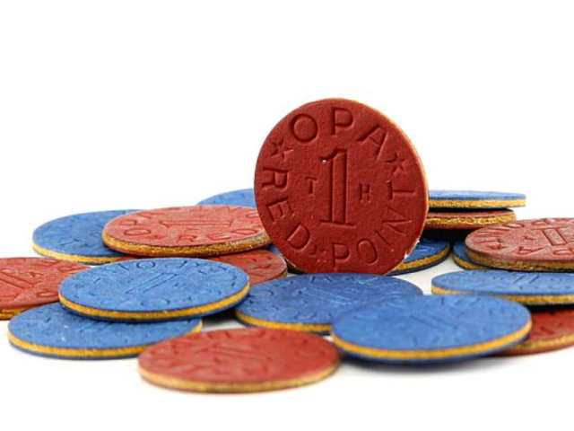 Office of Price Administration point tokens, blue and red food ration tokens, 1944 Primary Source ID EF.05.02.A