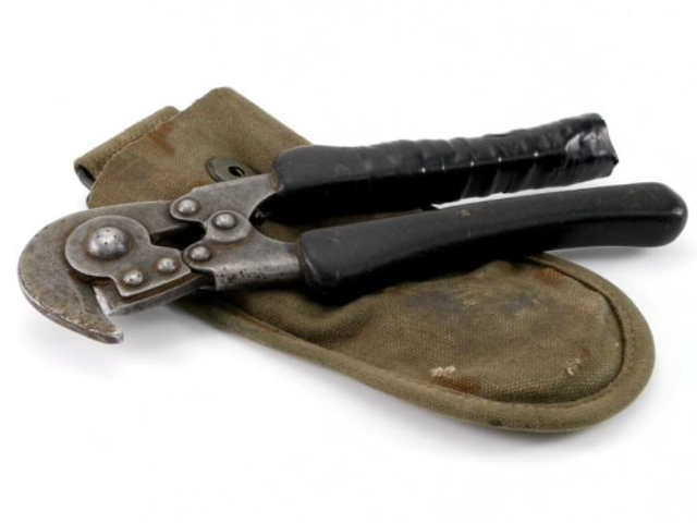 Wire cutter with case. Key tool used by soldiers. Wire cutters to cut through barbed wire. Marking: U.S. HKP 1945. Case is army green canvas with 'US' stamped on front. '??? STCH.CORPS 1944' Primary Source ID EF.07.02.A